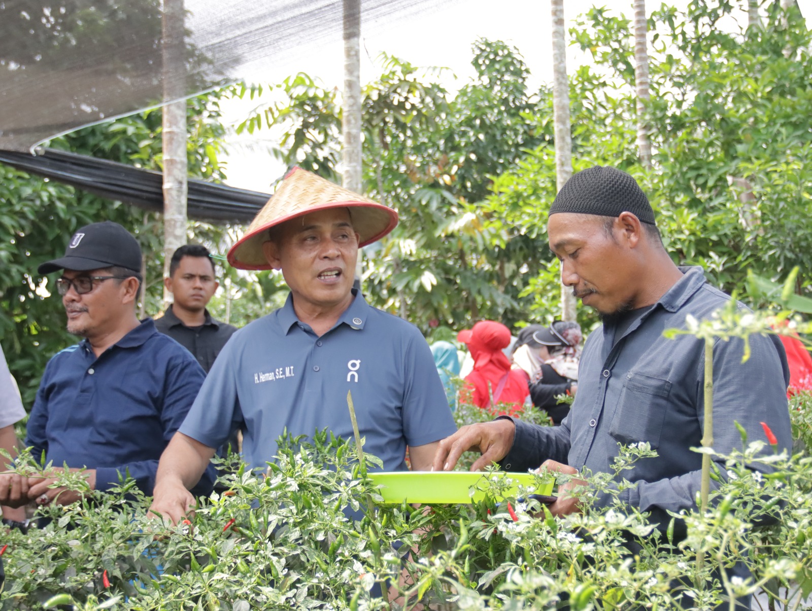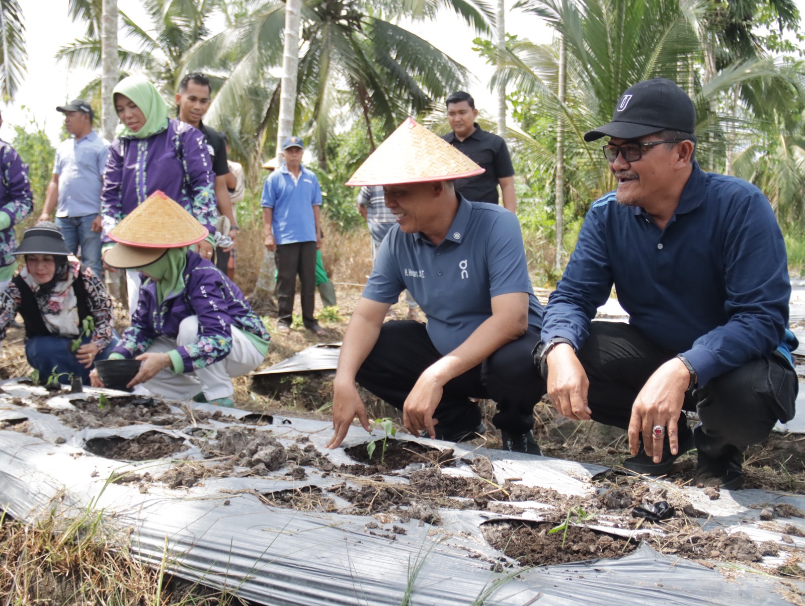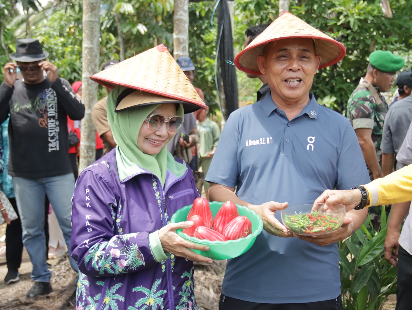 Tembilahan Inhil,- Bupati Indragiri Hilir H.Herman didampingi Ketua TP PKK Inhil Hj.Katerina Susanti serta beberapa kepala OPD pemkab Inhil, Lurah Pekan Arba, Babinsa, masyarakat yang tergabung kelompok tani Gemah Ripah, melakukan penanaman dan panen cabe bersama pada lahan kelompok tani Gemah Ripah kelurahan Pekan Arba Kecamatan Tembilahan, Minggu pagi (19 Oktober 2025).