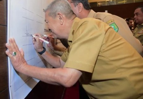 Usai sambutan Wakil Gubernur melakukan penandatanganan berita acara rembuk stunting tingkat Provinsi Riau yang di lanjutkan dengan penandatanganan Komitmen bersama dalam percepatan penurunan Stunting Provinsi Riau TH 2023.