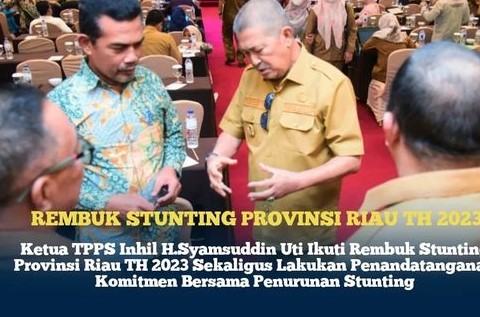 Pada Rembuk Stunting Tingkat Provinsi Riau Tahun 2023 membahas beberapa hal, diantaranya; Mekanisme Pelaporan Penyelenggaran Percepatan Penurunan Stunting, Indikator-indikator target capaian berdasarkan Peraturan Presiden No. 72 TH 2021 dan RAN PASTI yang menjadi kewenangan provinsi dan Kabupaten/Kota, Identifikasi kendala/masalah yang dihadapi oleh Kabupaten/kota dan Rumusan strategi tindak lanjut untuk memenuhi target capaian Ketua TPPS Inhil H.Syamsuddin Uti saat di wawancarai usai mengikuti pembukaan mengatakan, untuk menekan stunting di Kabupaten Indragiri Hilir berbagai macam cara sudah dilakukan guna menurunkan angka stunting di Kabupaten Indragiri Hilir.