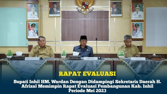 Bualkan.com, - Selasa (27/06/2023), Bupati Indragiri Hilir HM. Wardan dengan didampingi Sekretaris Daerah H. Afrizal memimpin rapat evaluasi pembangunan Kab. Inhil periode Mei 2023 yang di laksanakan di lantai 5 aula Kantor Bupati, Jl. Akasia no. 01 Tembilahan.