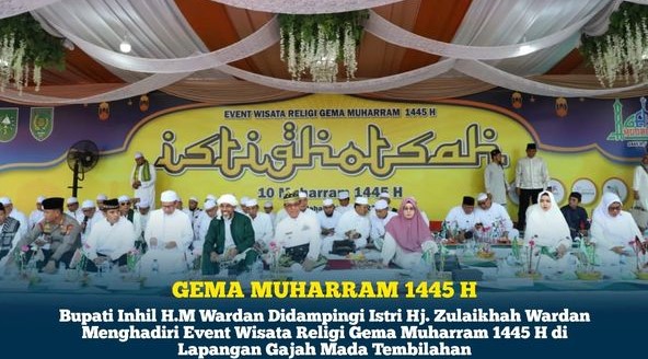 Tembilahan, - Bertepatan dengan tanggal 10 Muharram 1445 H / 28 July 2023 M, Pemerintah Kabupaten Indragiri Hilir kembali menggelar event wisata religi ‘Gema Muharram’ 1445 H, di lapangan upacara Gajah Mada Tembilahan, Jumat, (28/07/23).