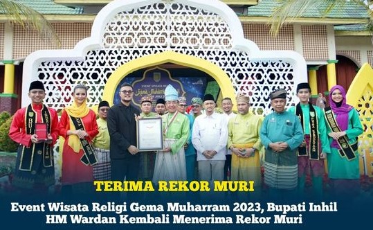 Rekor Muri ini diserahkan oleh Lutfi S. Pradana, Customer Relations Manager MURI dan diterima langsung oleh Bupati Indragiri Hilir, HM. Wardan serangkaian acara event wisata religi Gema Muharram 1445 Hijriyah tahun 2023.