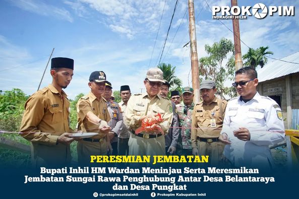 Bualkan.com, - Bupati Indragiri Hilir (Inhil) Drs HM Wardan MP meninjau serta meresmikan jembatan sungai rawa yang merupakan penghubung antar desa Belantararaya dan desa Pungkat ,Senin (24/7)