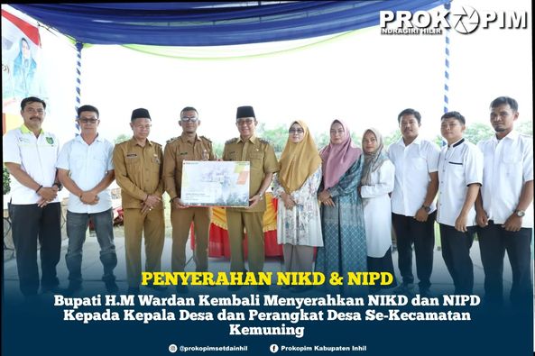 Bupati Indragiri Hilir (Inhil) kembali menyerahkan Nomor Induk Kepala Desa (NIKD) dan Nomor Induk Perangkat Desa (NIPD) bagi Seluruh Desa di Kecamatan Kemuning, Selasa, (19/9/23).