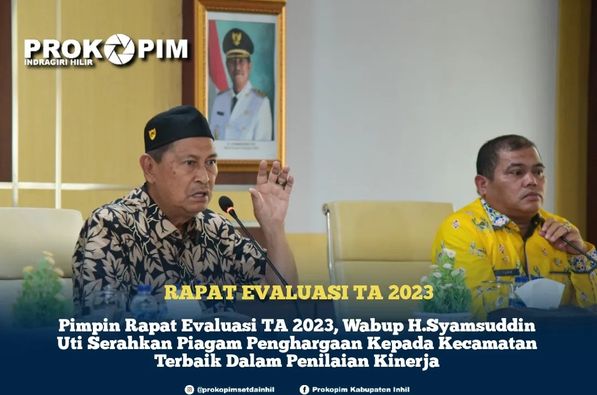 Pada kesempatan tersebut Wakil Bupati H.Syamsuddin Uti juga menyerahkan Piagam Penghargaan kepada Kecamatan Tembilahan Hulu sebagai pemenang pertama penilaian evaluasi kinerja Kecamatan TH 2023. Selanjutnya, Untuk Pemenang Ke Dua diterima Kecamatan Mandah dan pemenang ke Tiga diterima Kecamatan Tembilahan dalam. Evaluasi Kinerja TH 2023.