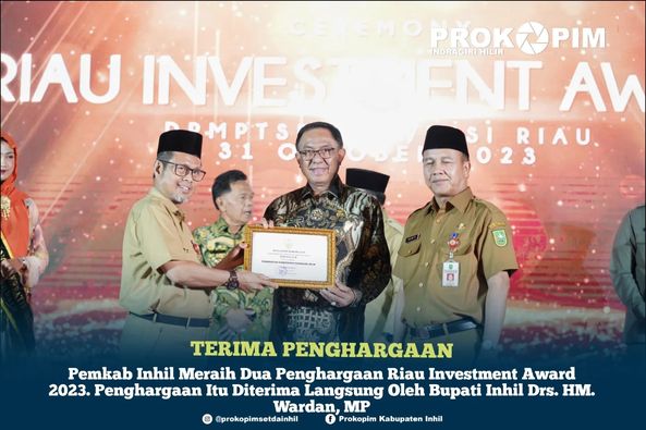 Kabupaten Indragiri Hilir (Inhil) berhasil menerima dua penghargaan bergengsi pada ajang Riau Investment Award tahun 2023 yang diselenggarakan Badan Penanaman Modal dan Promosi Daerah (BPMPD) Provinsi Riau, bertempat di Ball Room Prime Park Hotel Pekanbaru, Selasa (31/10/2023).