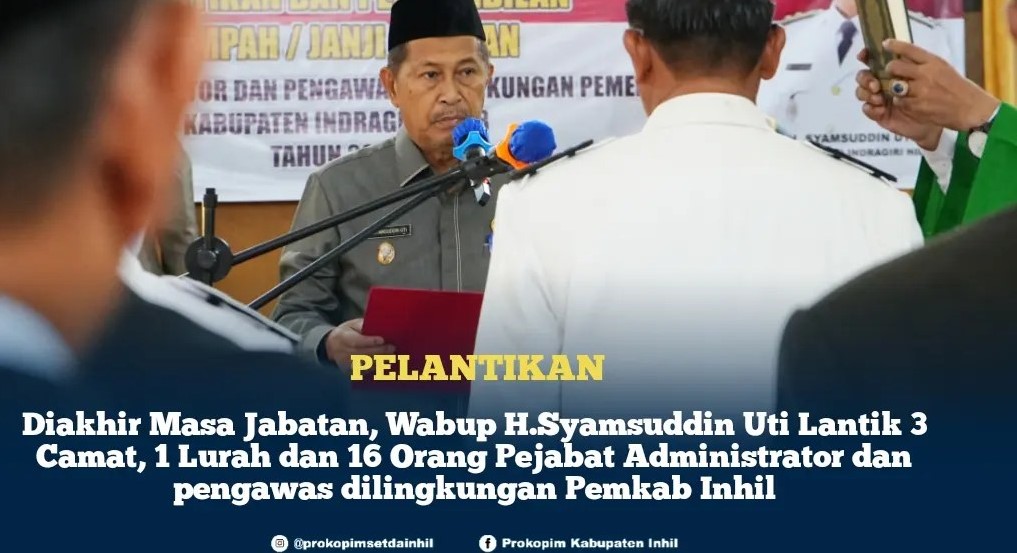 Pelantikan dan pengambilan sumpah jabatan oleh Wakil Bupati Kabupaten Indragiri Hilir H.Syamsuddin Uti turut didampingi Staf Ahli Bupati, Kepala BKPSDM serta beberapa Pejabat eselon dilingkungan Pemkab Inhil.